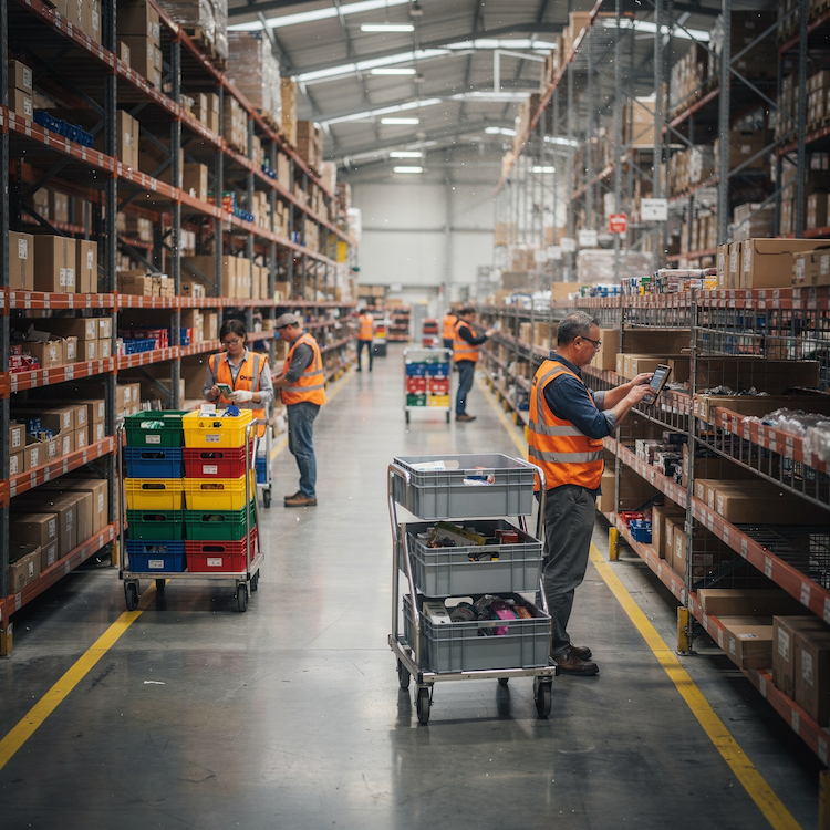 Les documents de prélèvement guident les opérateurs dans l'entrepôt, indiquant les emplacements et les quantités à sortir pour chaque commande.